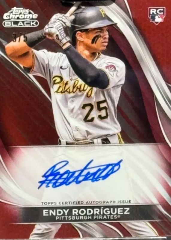 The Endy Rodriguez 2024 Topps Chrome Black #CBA-ER Autographs - Red Refractor /5 Rookie card in Raw condition has not changed in price in the last 30 days and was last sold for $180.00 .
