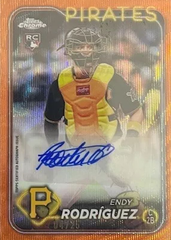 2024 Topps Chrome Update Endy Rodriguez Rookie Orange Wave Auto 07/25 Pirates RC