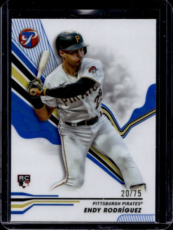 The Endy Rodriguez 2024 Topps Pristine #149 Blue Refractor /75 Rookie card is 1 of 26 Endy Rodriguez's card variations in the 2024 Topps Pristine set being tracked by Sports Card Investor, including Base, Pristine Refractor, Refractor, Green Refractor /150, and Pristine Purple Refractor /99.