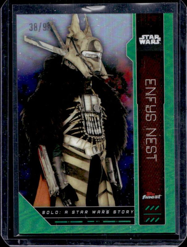 The Enfys Nest 2023 Topps Finest #FN-85 Green /99 card is 1 of 10 Enfys Nest's card variations in the 2023 Topps Finest set being tracked by Sports Card Investor, including Base, Refractor, Aqua /199, Purple Raywave /75, and Gold /50.