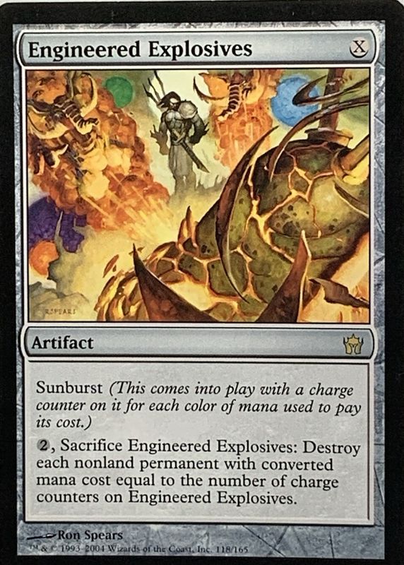 The Engineered Explosives 2004 Fifth Dawn #118 Base card in Raw TCG (Lightly Played) condition has moved up $0.83 (+13.6%) in the last 30 days and was last sold for $6.95 .