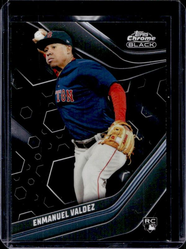 The Enmanuel Valdez 2023 Topps Chrome Black #69 Base Rookie card is 1 of 13 Enmanuel Valdez's card variations in the 2023 Topps Chrome Black set being tracked by Sports Card Investor, including Refractor /199, Purple Mini Diamond Refractor /150, Green Refractor /99, Green Wave Refractor /99, and Blue Lava Refractor /75.
