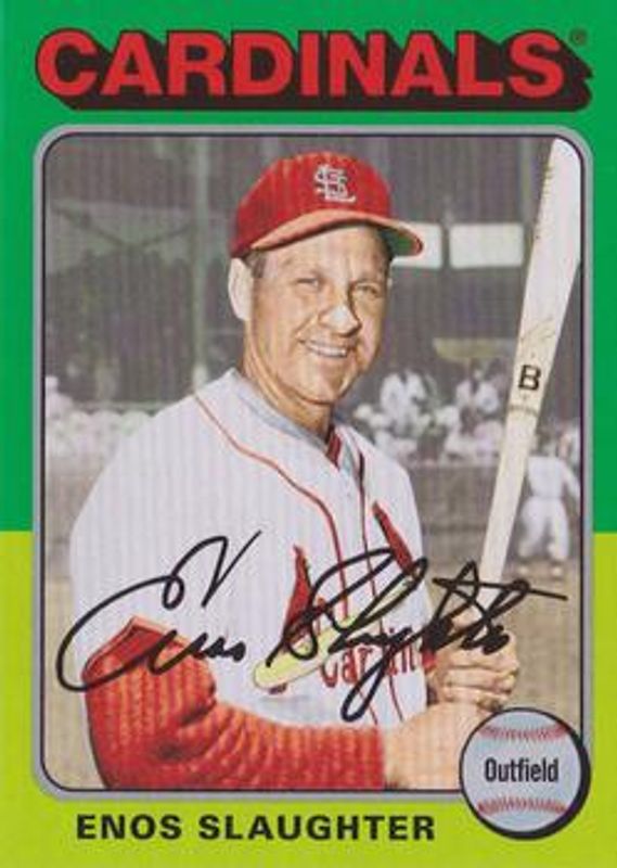 The Enos Slaughter 2019 Topps Archives #182 Silver /99 card is 1 of 7 Enos Slaughter's card variations in the 2019 Topps Archives set being tracked by Sports Card Investor, including Base, Purple /175, Blue /25, Gold /1, and 1975 Topps Mini.