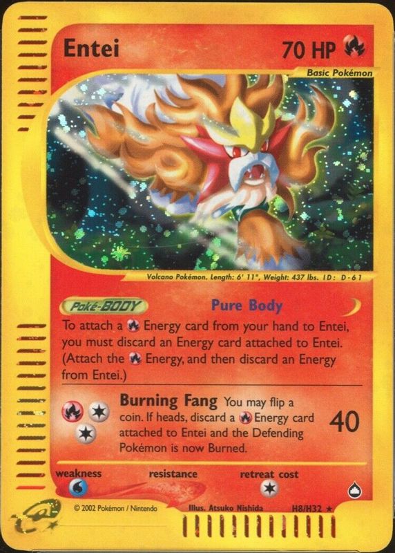 Entei 2003 Aquapolis #H8 Holo RAW TCG (HEAVILY PLAYED) Price Guide