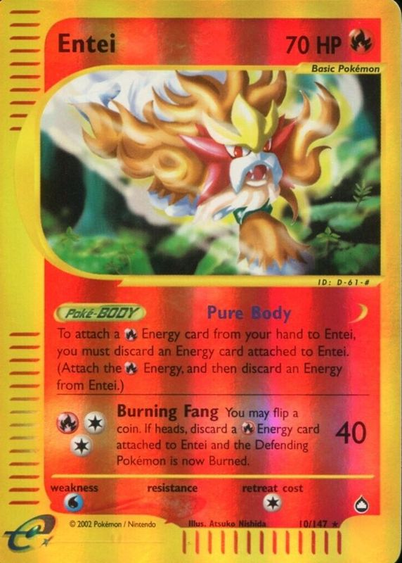 Entei 10/147 Pokémon Card TCG 2003 Aquapolis Reverse Holo Rare NM Vintage WOTC