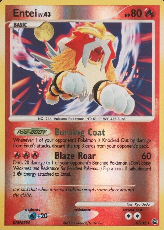 Entei 2007 Diamond & Pearl: Secret Wonders #004/132 Reverse Holo RAW TCG (LIGHTLY PLAYED) Price Guide