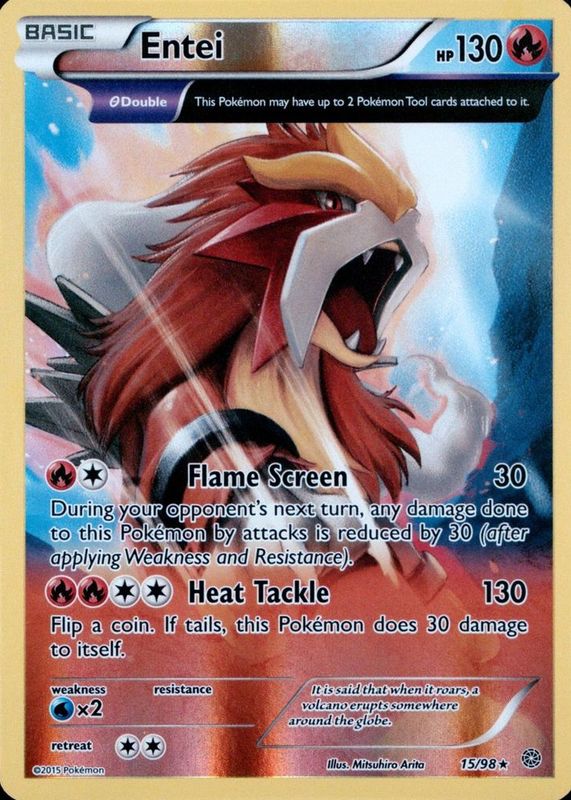 The Entei 2015 XY: Ancient Origins #15/98 Reverse Holo card in Raw TCG (Lightly Played) condition has moved down -$0.49 (-10.9%) in the last 30 days and was last sold for $4.00 .