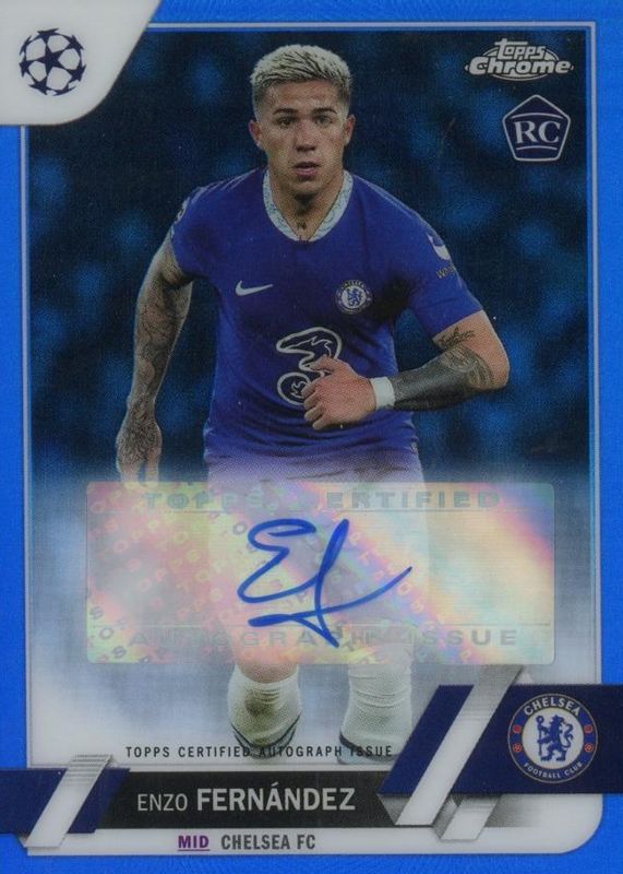 Enzo Fernandez 2022 Topps Chrome UEFA CC Blue Refractor RC Auto RC /150 CHELSEA