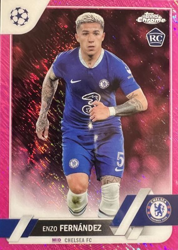 Enzo Fernandez 2022-23 Topps Chrome UEFA Club #158 Rookie RC Pink Shimmer /250