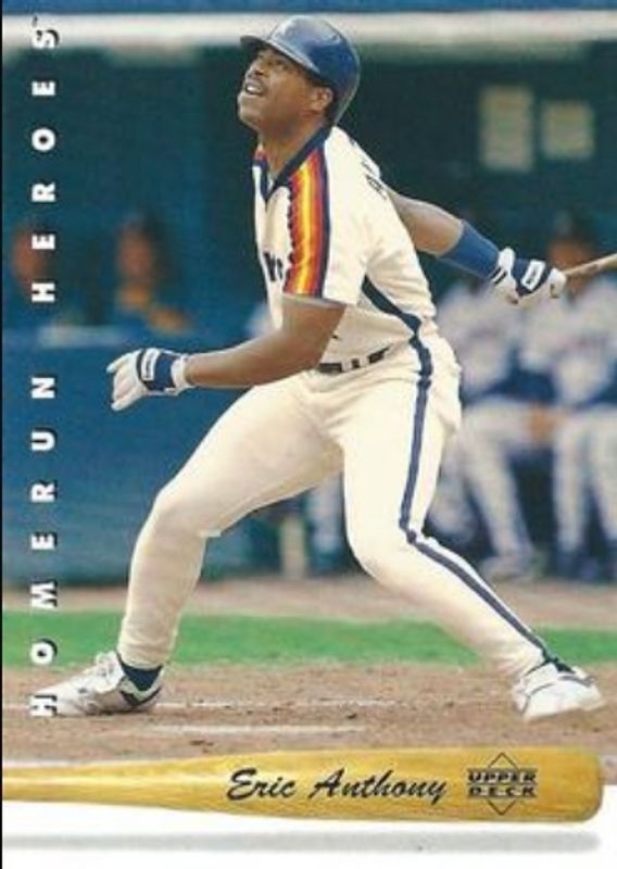 The Eric Anthony 1993 Upper Deck #HR22 Home Run Heroes card is 1 of 3 Eric Anthony's card variations in the 1993 Upper Deck set being tracked by Sports Card Investor, including Base, and Gold Hologram.