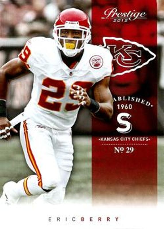 The Eric Berry 2012 Prestige #92 Base card is 1 of 5 Eric Berry's card variations in the 2012 Prestige set being tracked by Sports Card Investor, including Extra Points Gold, Extra Points Green /25, Extra Points Black /10, and Stars of the NFL.