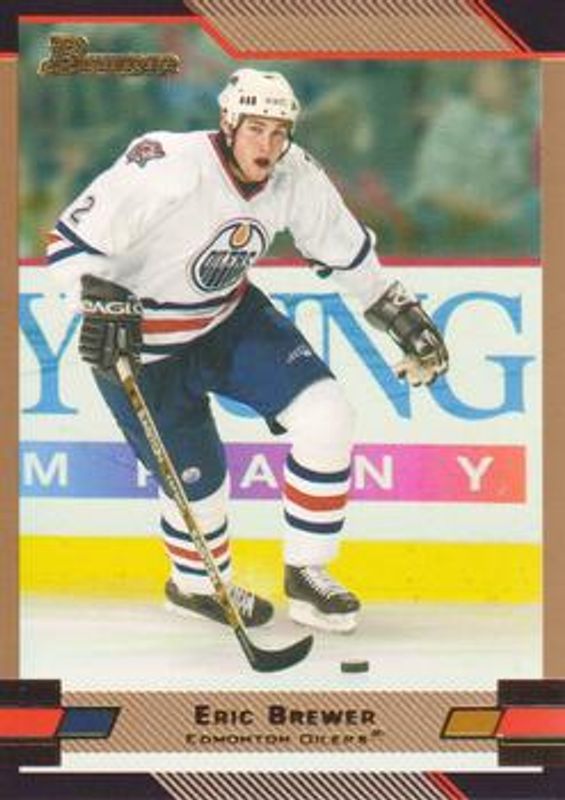 The Eric Brewer 2003 Bowman Draft Picks & Prospects #52 Gold card is 1 of 6 Eric Brewer's card variations in the 2003 Bowman Draft Picks & Prospects set being tracked by Sports Card Investor, including Base, Chrome Refractor /300, Chrome /250, Chrome X-Fractor /150, and Chrome Gold Refractor /50.