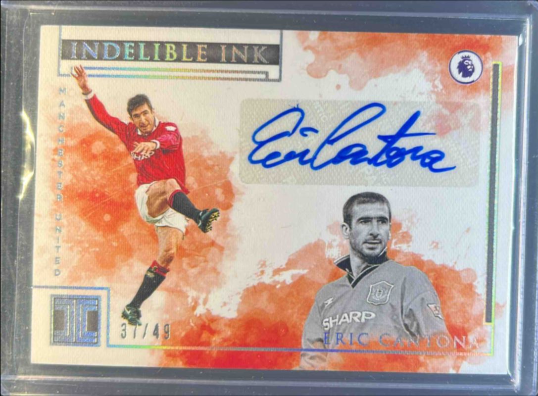 The Eric Cantona 2019 Impeccable Premier League #IN-ECA Indelible Ink - Silver /15 card is 1 of 19 Eric Cantona's card variations in the 2019 Impeccable Premier League set being tracked by Sports Card Investor, including Immortal Ink /99, All Time Legends /75, Canvas Creations /75, Indelible Ink /50, and All Time Legends - Silver /25.