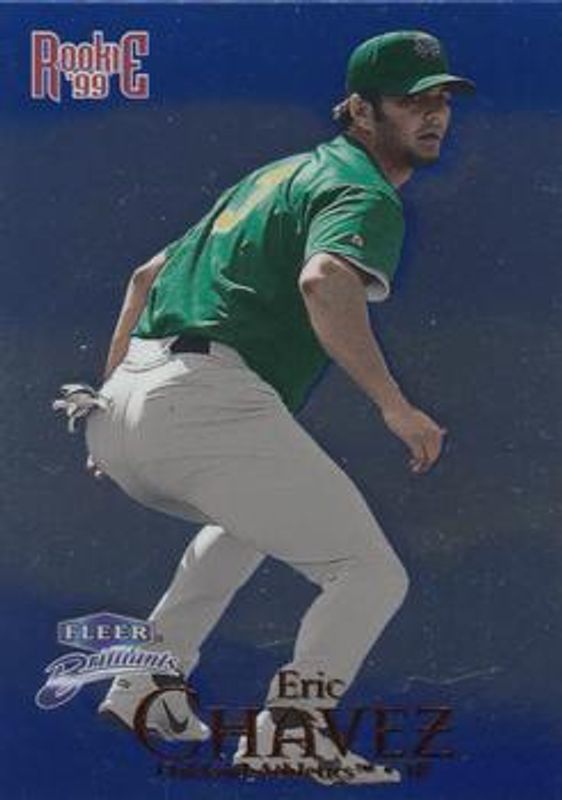 The Eric Chavez 1999 Fleer Brilliants #130B Blue Rookie card is 1 of 5 Eric Chavez's card variations in the 1999 Fleer Brilliants set being tracked by Sports Card Investor, including Base, Gold /99, 24-Karat Gold /24, and Illuminators.