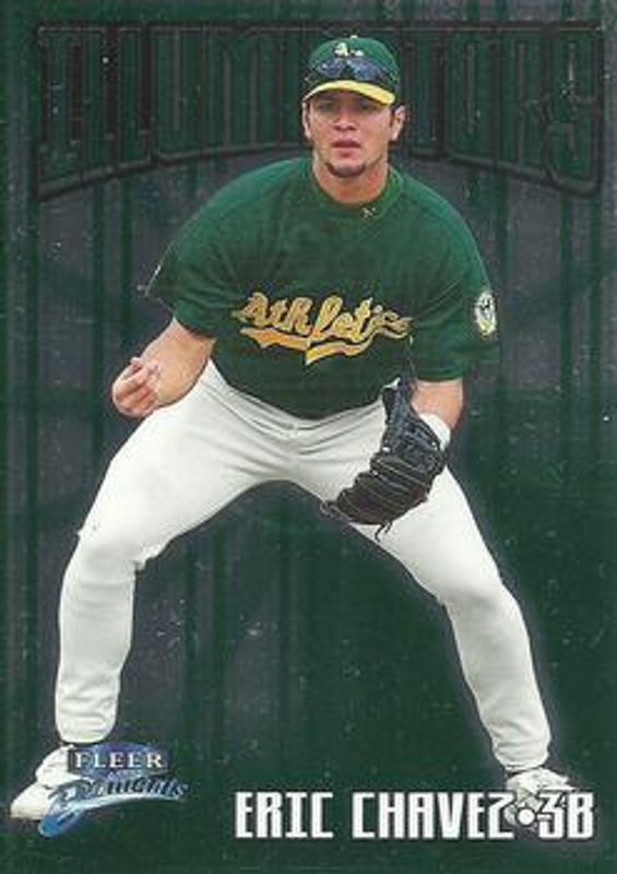 The Eric Chavez 1999 Fleer Brilliants #9-I Illuminators Rookie card is 1 of 5 Eric Chavez's card variations in the 1999 Fleer Brilliants set being tracked by Sports Card Investor, including Base, Blue, Gold /99, and 24-Karat Gold /24.