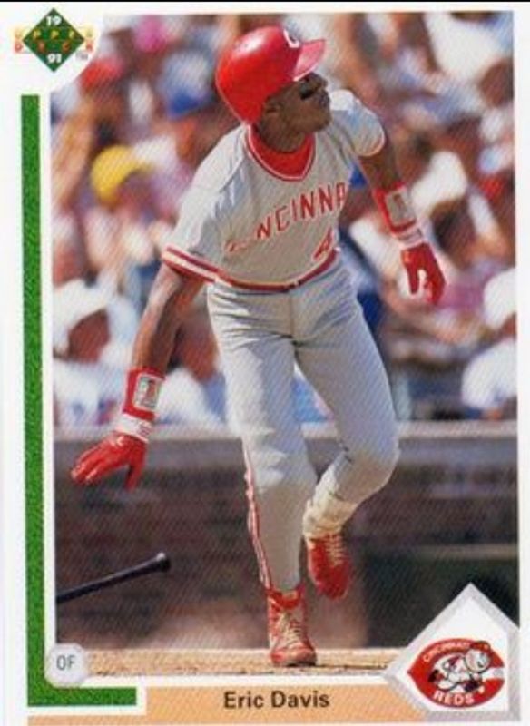 The Eric Davis 1991 Upper Deck #355 Base card is 1 of 2 Eric Davis' card variations in the 1991 Upper Deck set being tracked by Sports Card Investor, including Base.