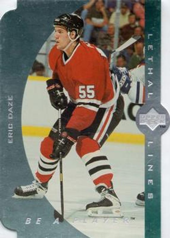 The Eric Daze 1995 Upper Deck Be a Player #LL4 Lethal Lines Rookie card is 1 of 4 Eric Daze's card variations in the 1995 Upper Deck Be a Player set being tracked by Sports Card Investor, including Base, Autographs, and Autographs die-cut.