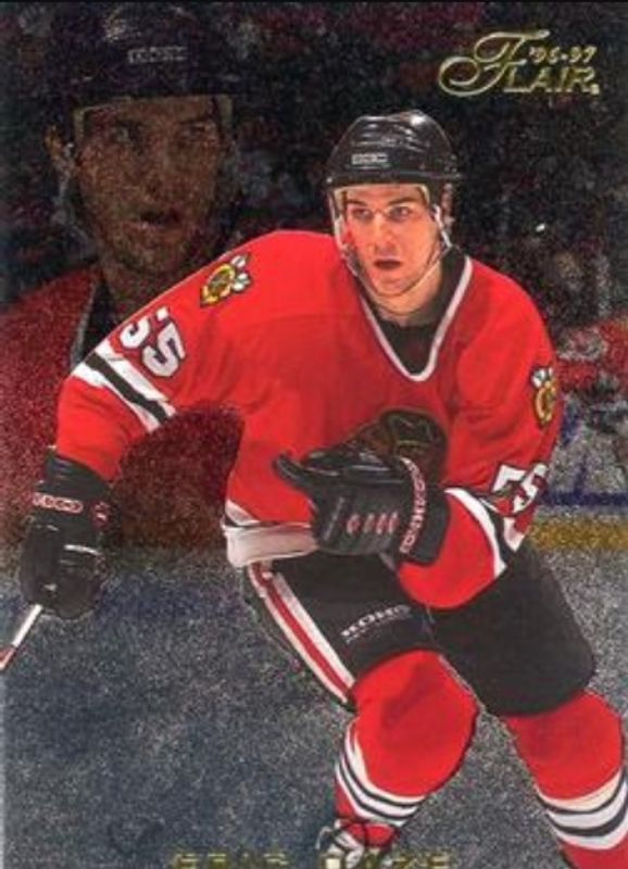 The Eric Daze 1996 Flair #16 Base card is 1 of 3 Eric Daze's card variations in the 1996 Flair set being tracked by Sports Card Investor, including Blue Ice Collection /250, and Hot Numbers.