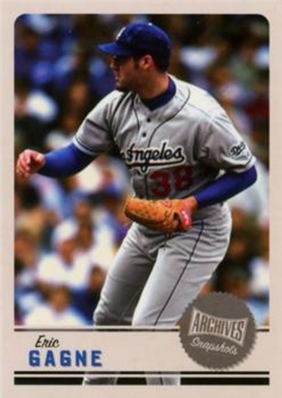 The Eric Gagne 2019 Topps Archives Snapshots #AS-EG Base card is 1 of 16 Eric Gagne's card variations in the 2019 Topps Archives Snapshots set being tracked by Sports Card Investor, including Black & White, Blue /50, Gold /10, Black /1, and Autographs.