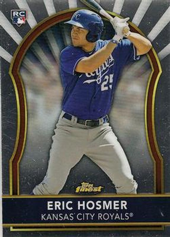 The Eric Hosmer 2011 Topps Finest #63 Base Rookie card is 1 of 30 Eric Hosmer's card variations in the 2011 Topps Finest set being tracked by Sports Card Investor, including Refractor /549, X-Fractor /299, Green Refractor /199, Orange Refractor /99, and Gold Refractor /50.