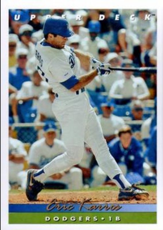 The Eric Karros 1993 Upper Deck #385 Base card is 1 of 10 Eric Karros' card variations in the 1993 Upper Deck set being tracked by Sports Card Investor, including #490 Base, #490 Gold Hologram, #385 Gold Hologram, #A10 5th Anniversary, and #HR19 Home Run Heroes.