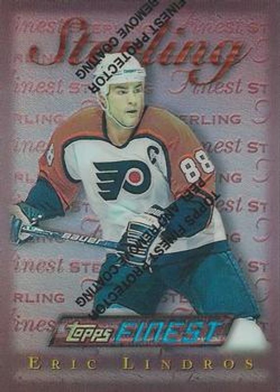 The Eric Lindros 1995 Topps Finest #1 Refractor card is 1 of 4 Eric Lindros' card variations in the 1995 Topps Finest set being tracked by Sports Card Investor, including #1 Base, #88 Base, and #88 Refractor.