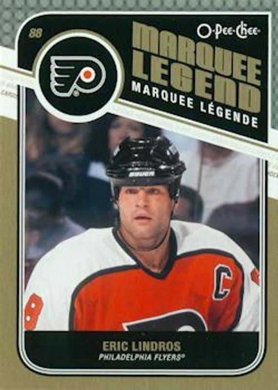 The Eric Lindros 2011 O-Pee-Chee #509 Base card is 1 of 5 Eric Lindros' card variations in the 2011 O-Pee-Chee set being tracked by Sports Card Investor, including Rainbow, Retro, Black Rainbow /100, and Marquee Legends.
