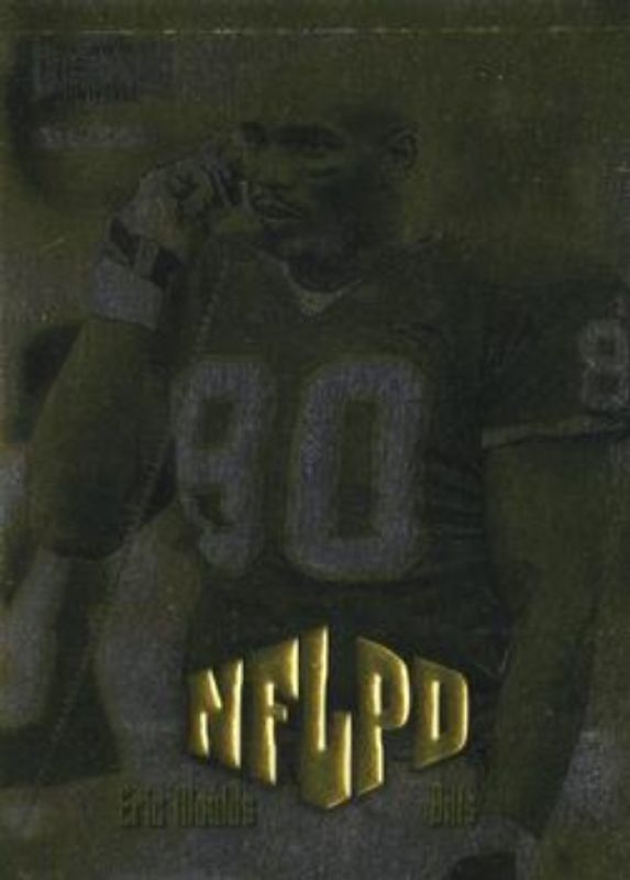 The Eric Moulds 1999 Metal Universe #190 Base card is 1 of 7 Eric Moulds' card variations in the 1999 Metal Universe set being tracked by Sports Card Investor, including #1 Base, #1 Precious Metal Gems /50, #190 Precious Metal Gems /50, #1 Precious Metal Gems - Gem Masters /1, and #190 Precious Metal Gems - Gem Masters /1.