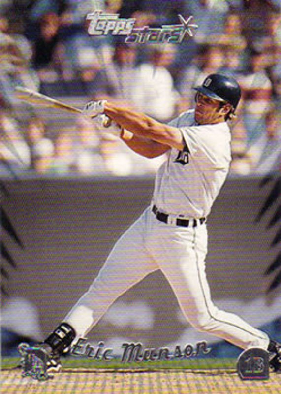 The Eric Munson 2000 Topps Stars #127 Base card is 1 of 5 Eric Munson's card variations in the 2000 Topps Stars set being tracked by Sports Card Investor, including #187 Base, #127 Metallic Blue /299, #187 Metallic Blue /299, and #GGB7 Game Gear - Bats.