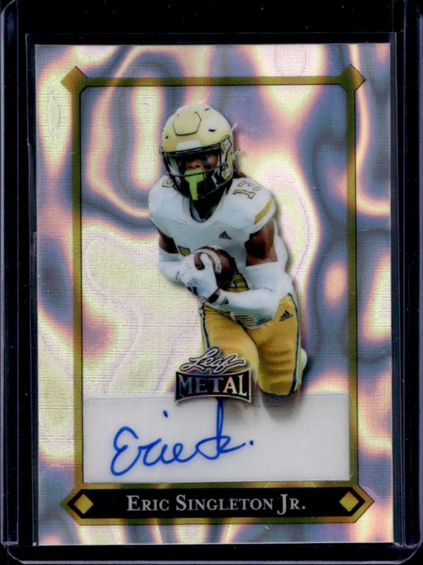 The Eric Singleton Jr. 2025 Leaf Metal #92L-ESJ 92 Leaf LGR Autographs - Lava Silver /15 card is 1 of 100 Eric Singleton Jr.'s card variations in the 2025 Leaf Metal set being tracked by Sports Card Investor, including 92 Leaf LGR Autographs - Prismatic Silver /25, Next In Line - Prismatic Silver /25, 92 Leaf LGR Autographs - Prismatic Blue /20, Next In Line - Prismatic Blue /20, and 92 Leaf LGR Autographs - Prismatic Red /15.