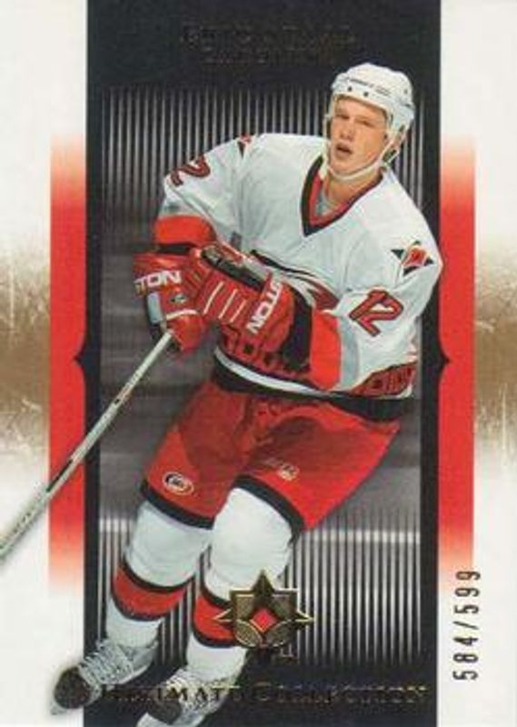The Eric Staal 2005 Upper Deck Ultimate Collection #18 Base /599 card is 1 of 12 Eric Staal's card variations in the 2005 Upper Deck Ultimate Collection set being tracked by Sports Card Investor, including Gold /25, Ultimate Signatures, Jerseys /250, Marquee Attractions /250, and Premium Swatches /75.