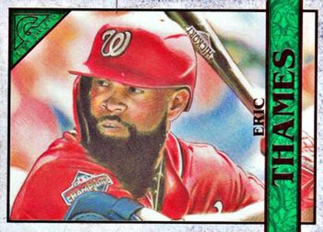 The Eric Thames 2020 Topps Gallery #90 Green /99 card is 1 of 18 Eric Thames' card variations in the 2020 Topps Gallery set being tracked by Sports Card Investor, including Base, Artist's Proofs, Rainbow Foil, Wood, and Private Issue /250.