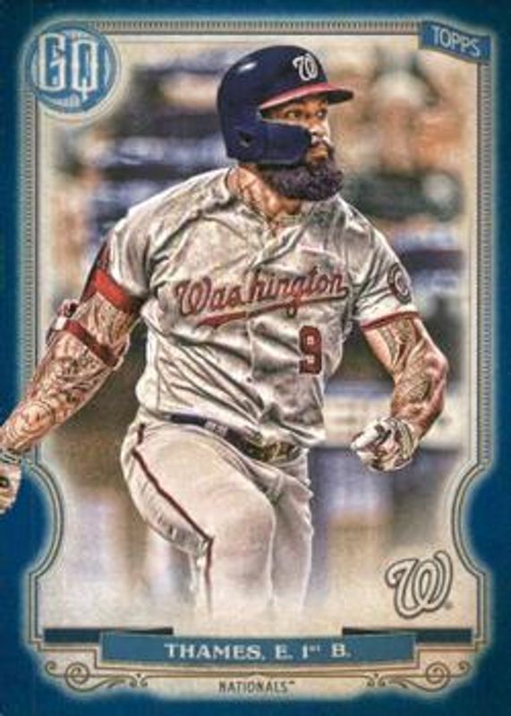The Eric Thames 2020 Topps Gypsy Queen #140 Indigo /250 card is 1 of 13 Eric Thames' card variations in the 2020 Topps Gypsy Queen set being tracked by Sports Card Investor, including Base, Bazooka Back, GQ Logo Swap, Green, and Missing Nameplate.