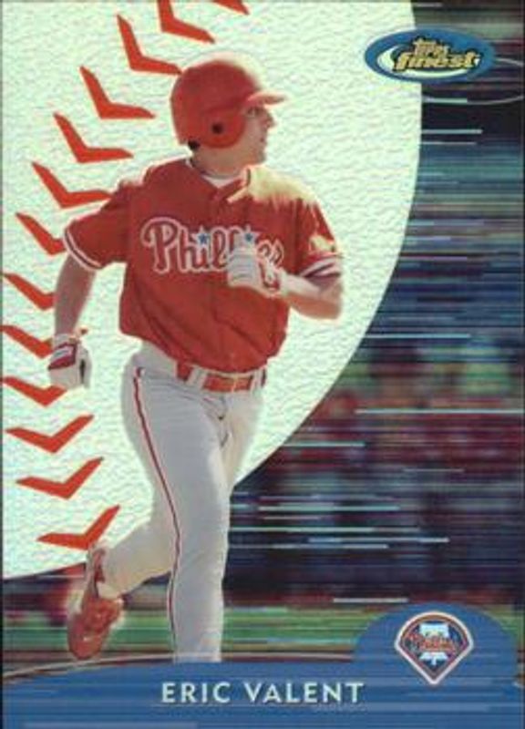 The Eric Valent 2000 Topps Finest #238 Refractor /1000 card is 1 of 3 Eric Valent's card variations in the 2000 Topps Finest set being tracked by Sports Card Investor, including Base, and Gold Refractor /100.