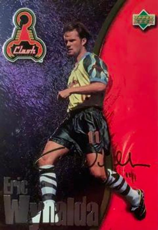 The Eric Wynalda 1997 Upper Deck MLS #S3 Signatures card is 1 of 4 Eric Wynalda's card variations in the 1997 Upper Deck MLS set being tracked by Sports Card Investor, including Base, Gold, and Trophy Winners.