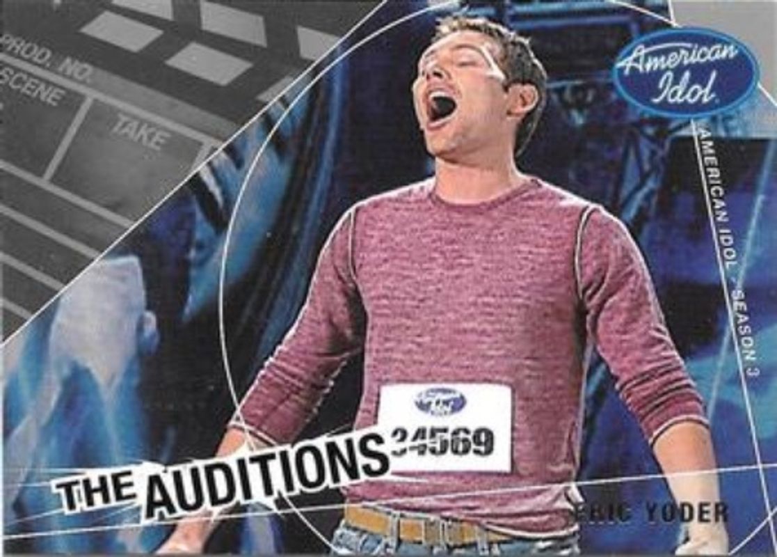 The Eric Yoder 2004 Fleer American Idol Season 3 #71 Base card is 1 of 5 Eric Yoder's card variations in the 2004 Fleer American Idol Season 3 set being tracked by Sports Card Investor, including Base, Gold, Platinum, and Idol Chatter.