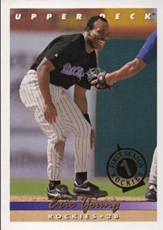 The Eric Young 1993 Upper Deck Colorado Rockies #521 Base Rookie card is 1 of 2 Eric Young's card variations in the 1993 Upper Deck Colorado Rockies set being tracked by Sports Card Investor, including Base.