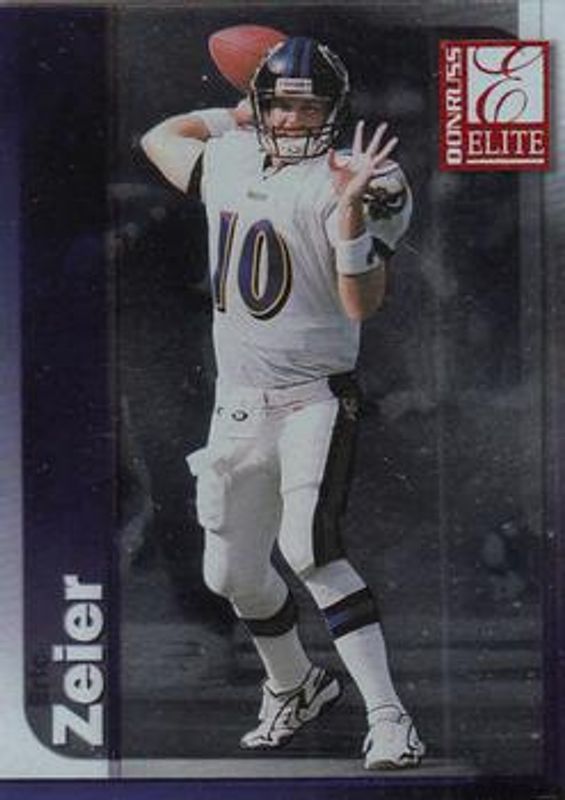 The Eric Zeier 1999 Donruss Elite #050 Base card is 1 of 3 Eric Zeier's card variations in the 1999 Donruss Elite set being tracked by Sports Card Investor, including Aspirations /72, and Status /28.