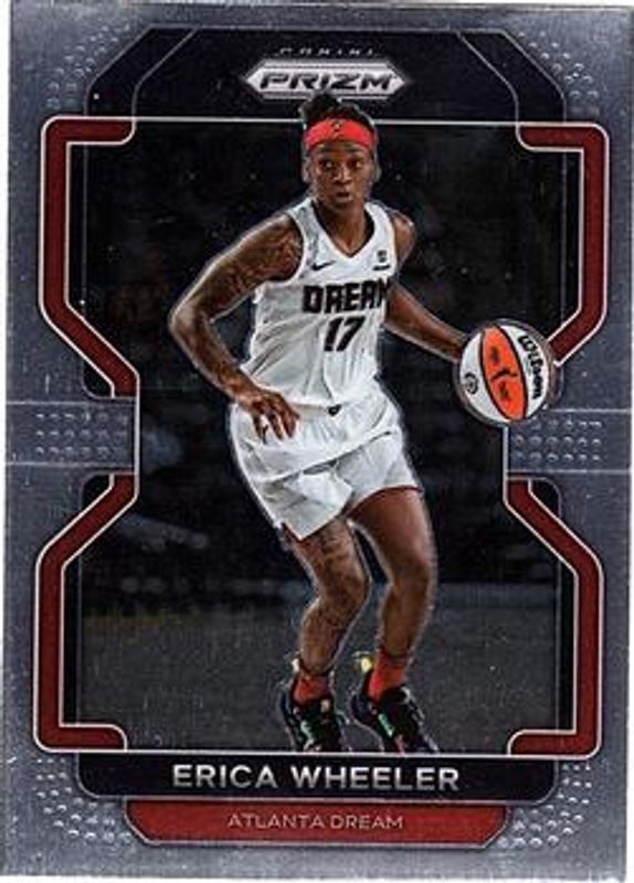 The Erica Wheeler 2022 Prizm WNBA #135 Base card is 1 of 42 Erica Wheeler's card variations in the 2022 Prizm WNBA set being tracked by Sports Card Investor, including Green, Green Ice, Hyper, Ice, and Ruby Wave.