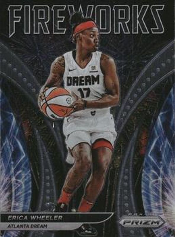 The Erica Wheeler 2022 Prizm WNBA #2 Fireworks card is 1 of 42 Erica Wheeler's card variations in the 2022 Prizm WNBA set being tracked by Sports Card Investor, including Base, Green, Green Ice, Hyper, and Ice.