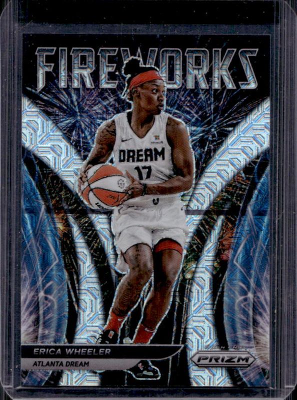 The Erica Wheeler 2022 Prizm WNBA #2 Fireworks - Mojo /25 card is 1 of 42 Erica Wheeler's card variations in the 2022 Prizm WNBA set being tracked by Sports Card Investor, including Base, Green, Green Ice, Hyper, and Ice.