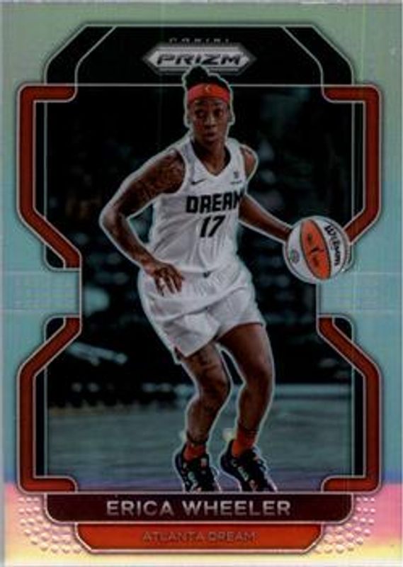 The Erica Wheeler 2022 Prizm WNBA #135 Silver card is 1 of 42 Erica Wheeler's card variations in the 2022 Prizm WNBA set being tracked by Sports Card Investor, including Base, Green, Green Ice, Hyper, and Ice.