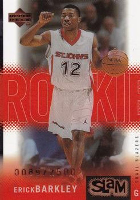 The Erick Barkley 2000 Upper Deck Slam #75 Base /2500 Rookie card is 1 of 3 Erick Barkley's card variations in the 2000 Upper Deck Slam set being tracked by Sports Card Investor, including Extra Strength Silver /500, and Extra Strength Gold /25.