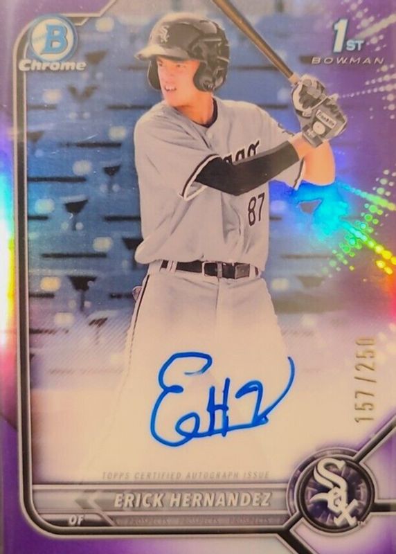 ERICK HERNANDEZ 2022 BOWMAN CHROME 1ST PURPLE REFRACTOR AUTO /250 Q3108