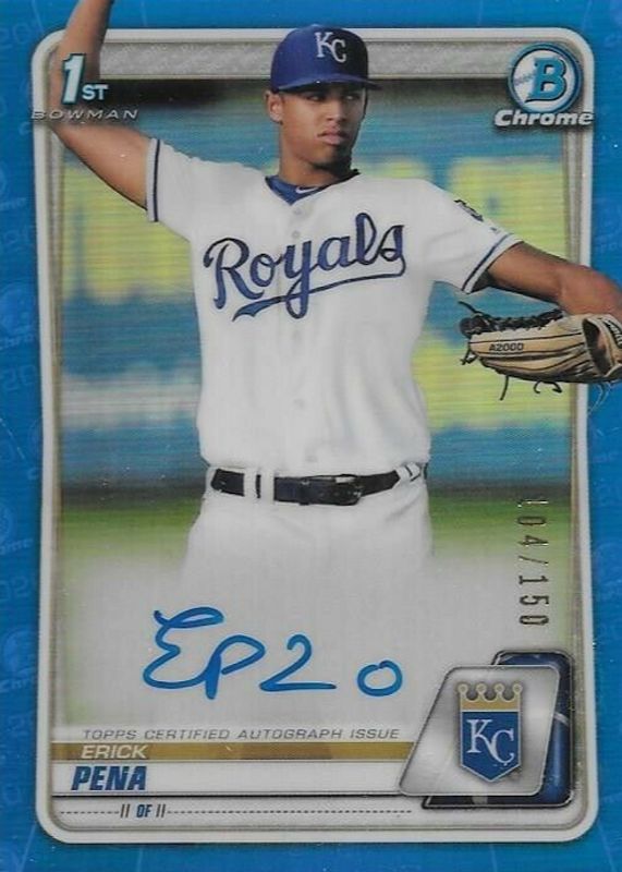2020 Bowman Chrome Erick Pena 1st Prospect Blue Refractor Auto #047/150 Royals