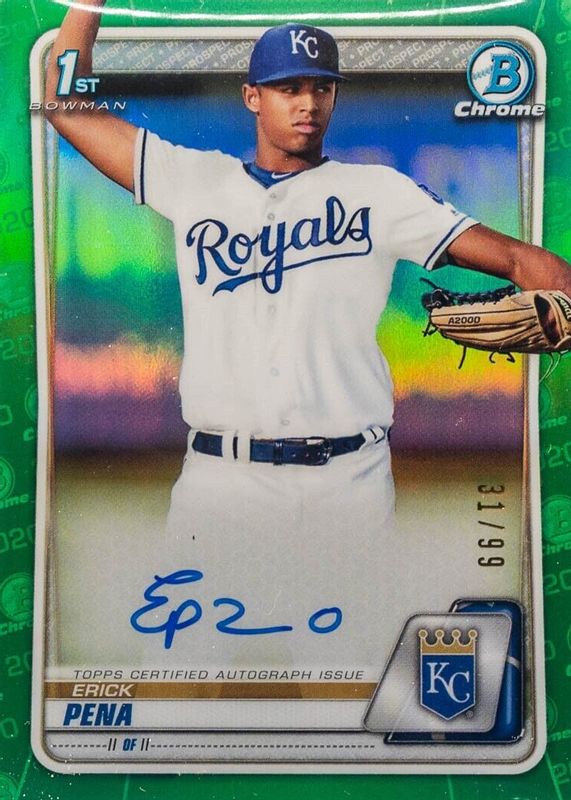 2020 BOWMAN CHROME ERICK PENA GREEN REFRACTOR AUTO /99 KANSAS CITY ROYALS MB