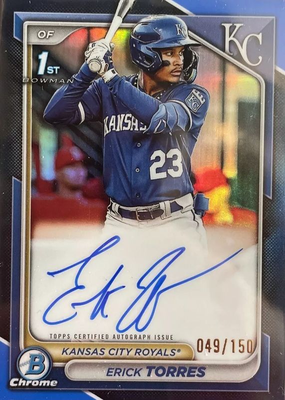 2024 Bowman Erick Torres Chrome Auto Blue Refractor 1st #76/150 Royals