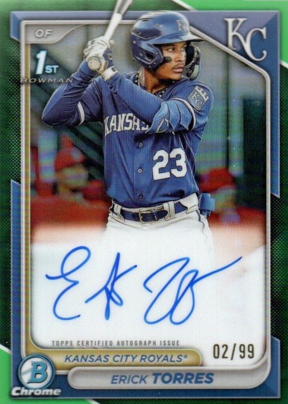 2024 Bowman Chrome ERICK TORRES 1st Green Refractor Auto 30/99 Royals SP 00381