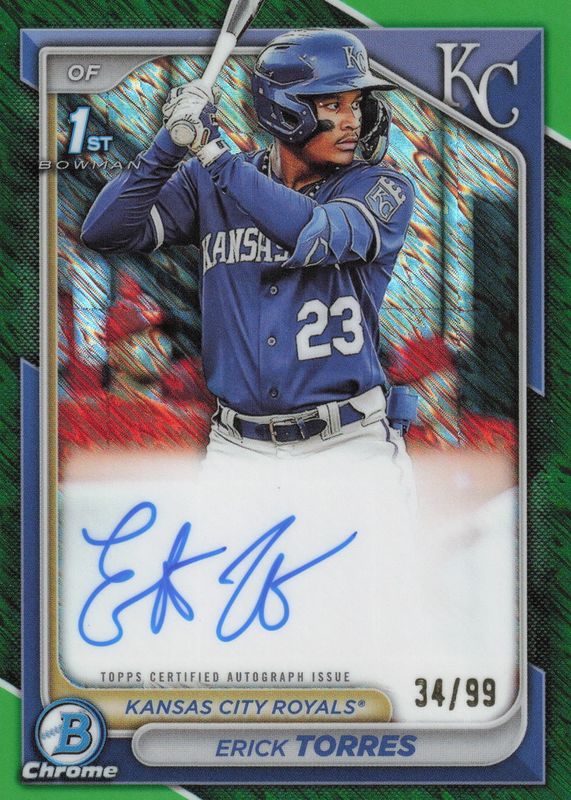 2024 Bowman Chrome Baseball Erick Torres Green Shimmer Refractor 1st Auto 6/99