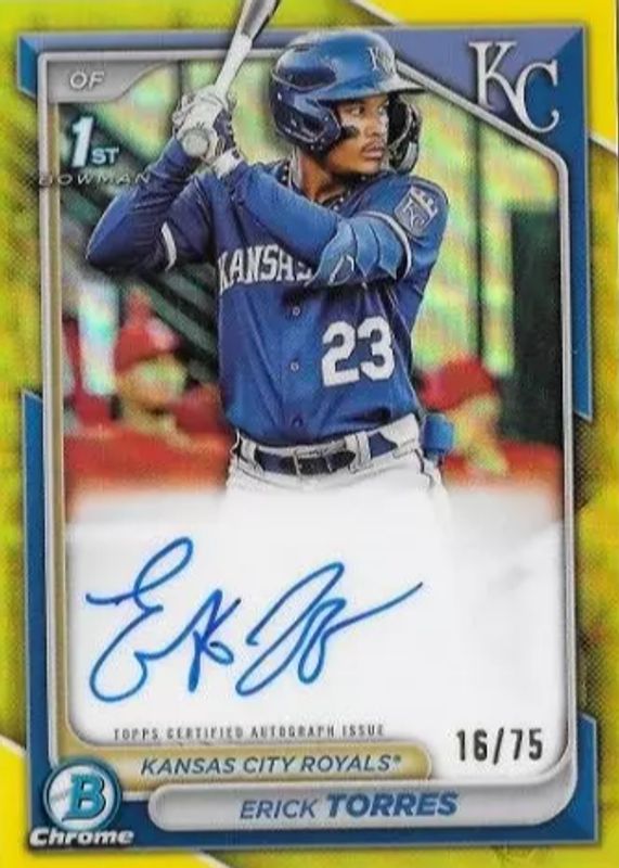 2024 Bowman Chrome ERICK TORRES #CPA-ET 1st Yellow Auto /75 Royals Prospect